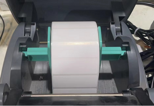 3. 将标签调整杆向两侧推开,以便取出标签纸卷