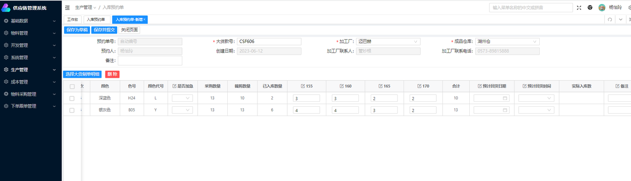 (4)填写每个颜色尺码的预约入库数,和预计回货日期和时间;