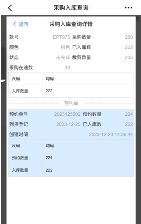 目录 搜索 更新日志常见问题改尺码改颜色删除设计下单指令删除设计款号建档基础数据品牌档案波段档案款式类型档案供应商档案颜色档案尺码号型仓库档案年份档案季节档案物料管理办料采购单办料入库单物料基础档案物料价格变更批量新增物料批量删除物料批量替换物料批量替换管理费用规则说明企划企划波段企划款式类型外部开发企划款式企划类型修改设计开发设计款号建档开发评审记录表设计下单指令开发BOM管理工艺单大货BOM管理AB类开发样管理使用说明-重要B类开发样板房操作A类理单登记开发样借用开发样报废板房或者仓库收货样衣库存管理样衣进度管理样衣制作指令样衣制作管理裁剪缝制进度样衣制作指令(印花)生产管理大货款号合格证品控管理检测记录产前准备裁剪单入库预约单合约单价调整单采购数量调整单货期延期调整单成本管理开发成本核价大货成本核价物料采购管理物料库存管理库存分配策略物料采购单供应商发货单加工厂入库单物料付款管理未付面料款汇总付款进度备货采购操作流程下单跟单管理印花下单管理大货款号管理运营返单生产下单管理成衣采购管理理单跟单预下单管理预下单核价单调整拍照样管理报表管理报表开发SQL模板VOP系统登录说明物料管理(供应商)物料基础档案供应商发货单物料付款管理付款进度汇总付款进度列表生产管理理单跟单裁剪单入库预约单物料管理(加工厂)供应商发货单(加工厂)付款进度汇总付款进度列表代销管理代销出入库概述预约入库手机钉钉端采购单-预约单查询各个系统地址 暂无相关搜索结果! 本文档使用 MinDoc 发布 采购单-预约单查询 1.打开手机钉钉,点击中间的全尚科技 2.找到SCM>>采购入库查询 3.查看正在进行中的款号,可查看入库比例、裁剪数量、采购在途、合约货期等信息 也可自行进行筛选 4.点击进去后可查看个尺码入库情况,各个预约单情况等信息文档更新时间: 2024-02-26 15:36 作者:王安东