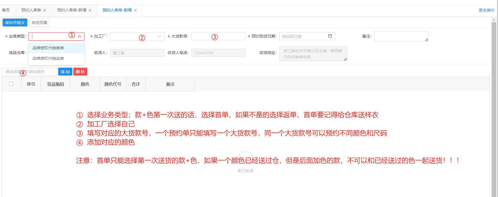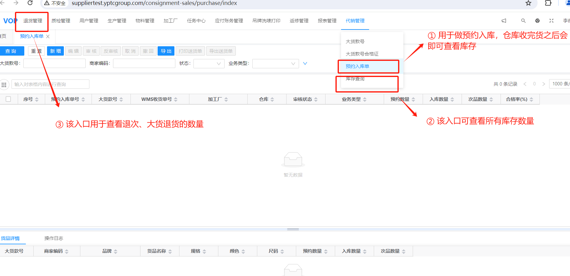 该功能只是用于代销大货,由供应商直接入仓;衣品天成需要按单收货,如果不做预约单,仓库将不会进行收货。