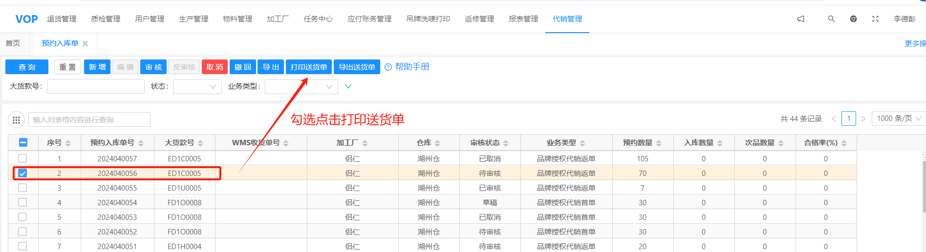 打印送货单: