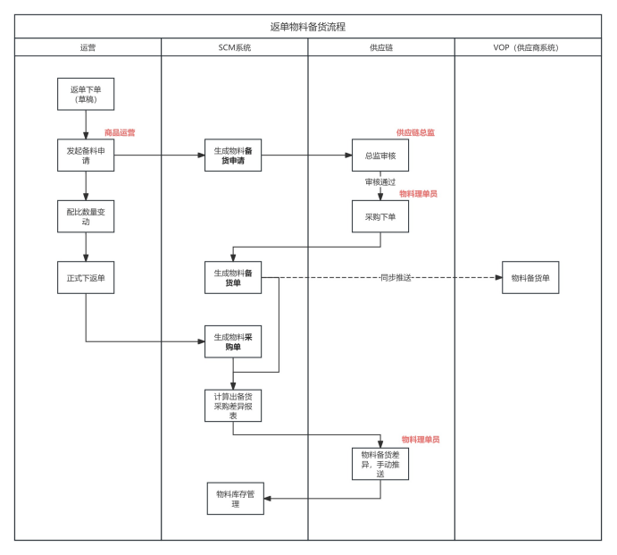 由于品牌的每周采购预算额度限制,前端运营无法下单。但是对于部分物料采购货期长的款式,前端运营希望让大货货期尽可能提前,所以就需要让采购部门提前进行物料备货采购。目前SCM系统上,没有相关的审批流程和单据,故增加了相关流程及功能。