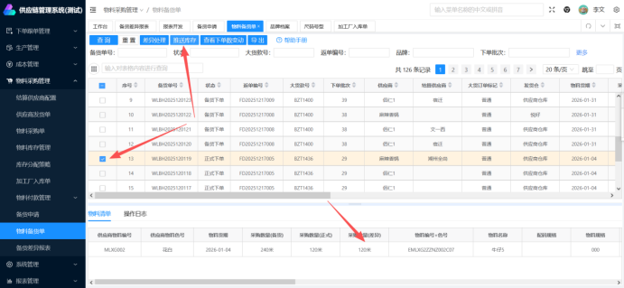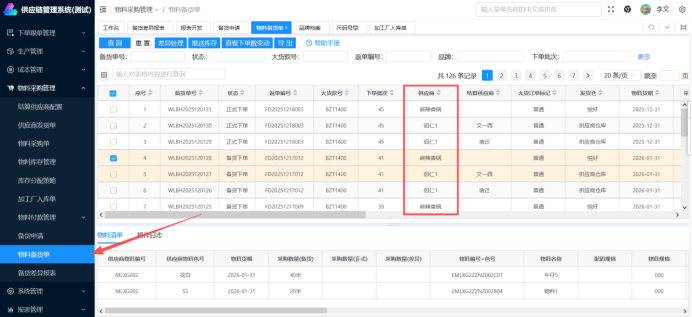 3、物料理单员,填写物料货期,进行备货采购下单。同时,备货采购单同步给供应商 系统VOP。