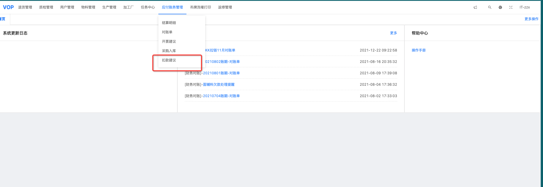 【应付账务管理】-【扣款建议】