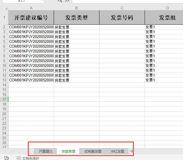 相同“开票建议单号+发票组”维度的款号开在同一张发票上,有几个发票组就开几张发票。