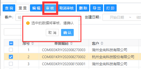 系统支持批量审核并进行二次弹框确认。
