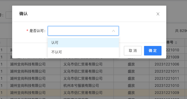在确认弹窗页面,供应商人员可以选择认可或者不认可。