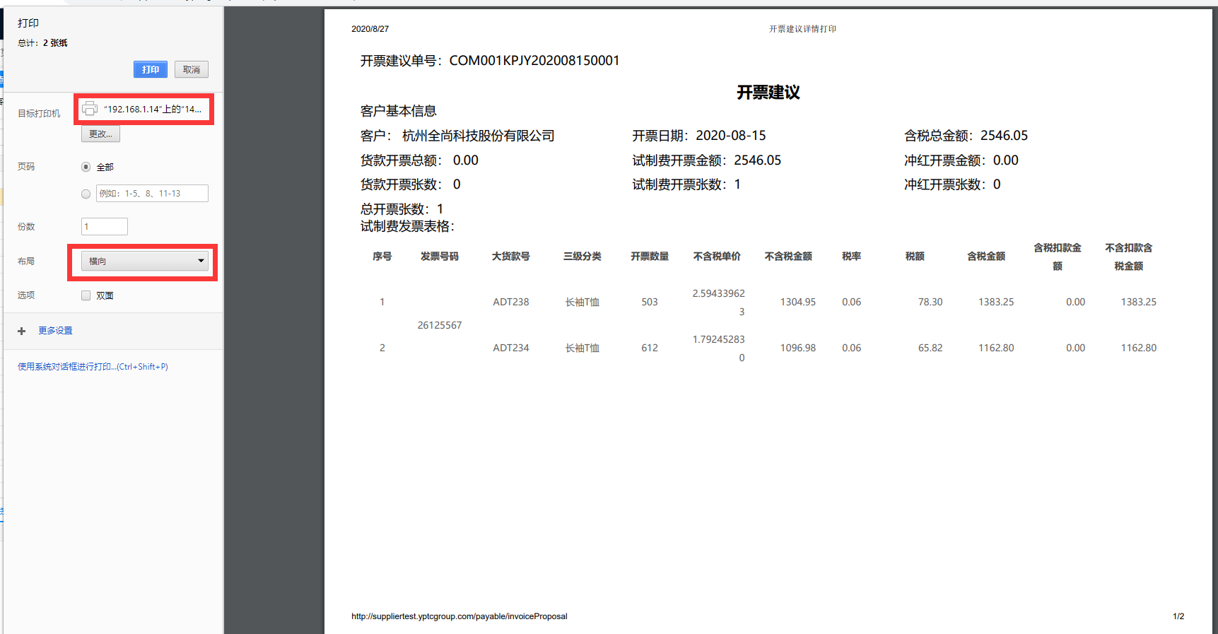 3、打印纸质开票建议,将纸质开票建议和纸质发票邮寄给衣品天成集团。