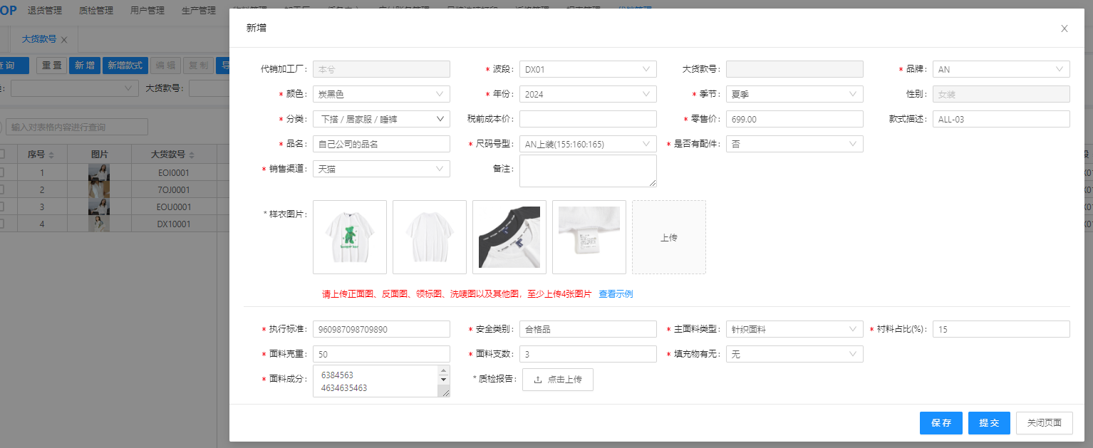 点击保存时,会创建一条草稿状态的大货款号,此种状态下还能编辑弹窗内信息