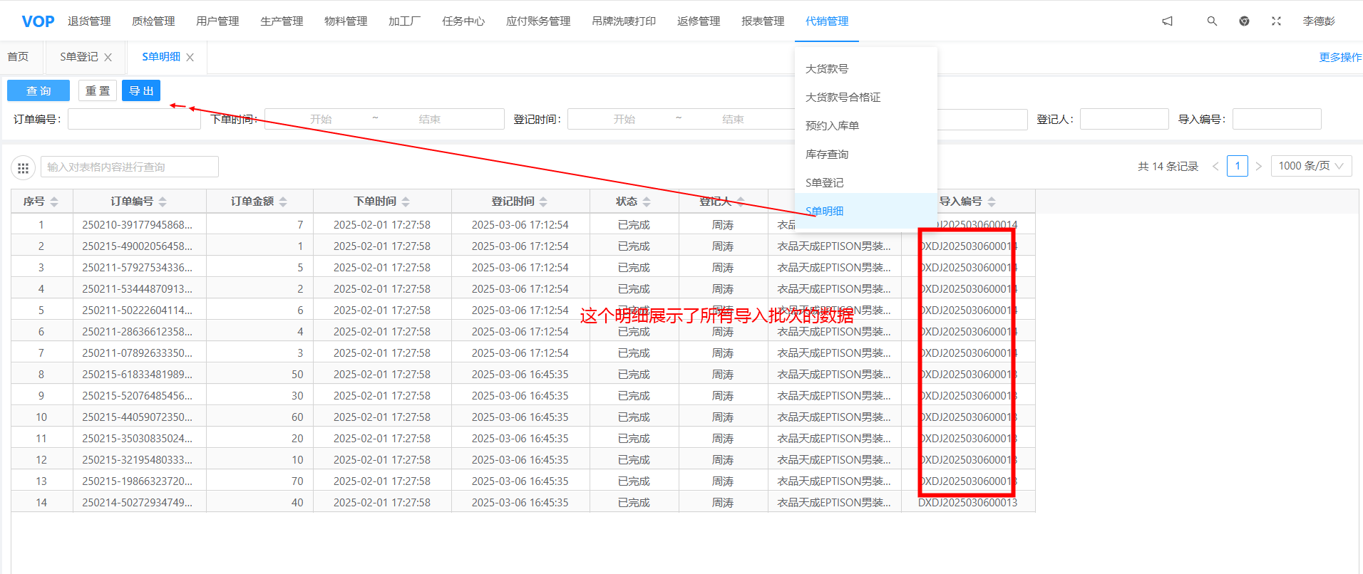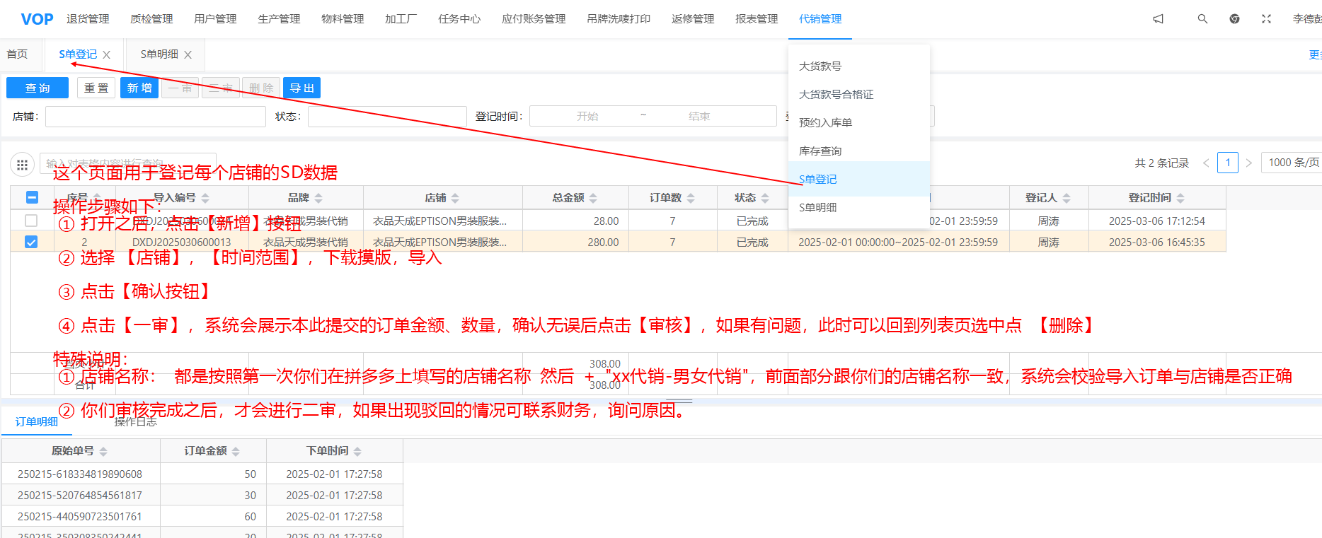 目录 搜索 0.系统概述、账号1.退货管理2.质检管理3.用户管理微信绑定4.物料管理办料采购物料管理5.生产管理拍照样特殊制作要求工厂管控(外发厂商)生产进度6.加工厂-面料付款工艺等7.任务中心8.应付账务管理应付账务管理使用手册应付账务管理常见问题汇总9.吊牌洗唛打印大货打印使用手册大货打印常见问题汇总唯一码绑定唯一码操作说明扫描枪打印饰品打印操作手册A类开发样打印10.返修管理返修单11.报表管理12.代销管理(对白代销)12.0波段、供应商、企划等基础配置12.1 大货款号12.2 大货款号合格证&打印合格证洗水唛13.新代销管理(衣品天成男女装)13.1 系统配置13.2 创建大货款号13.3 SCM 审核款式13,4 代销SD单登记帮助中心文档模板客服工单系统 暂无相关搜索结果! 本文档使用 MinDoc 发布 13,4 代销SD单登记 文档更新时间: 2025-03-10 14:03 作者:李德彭