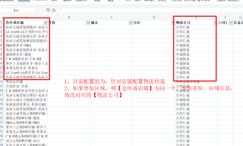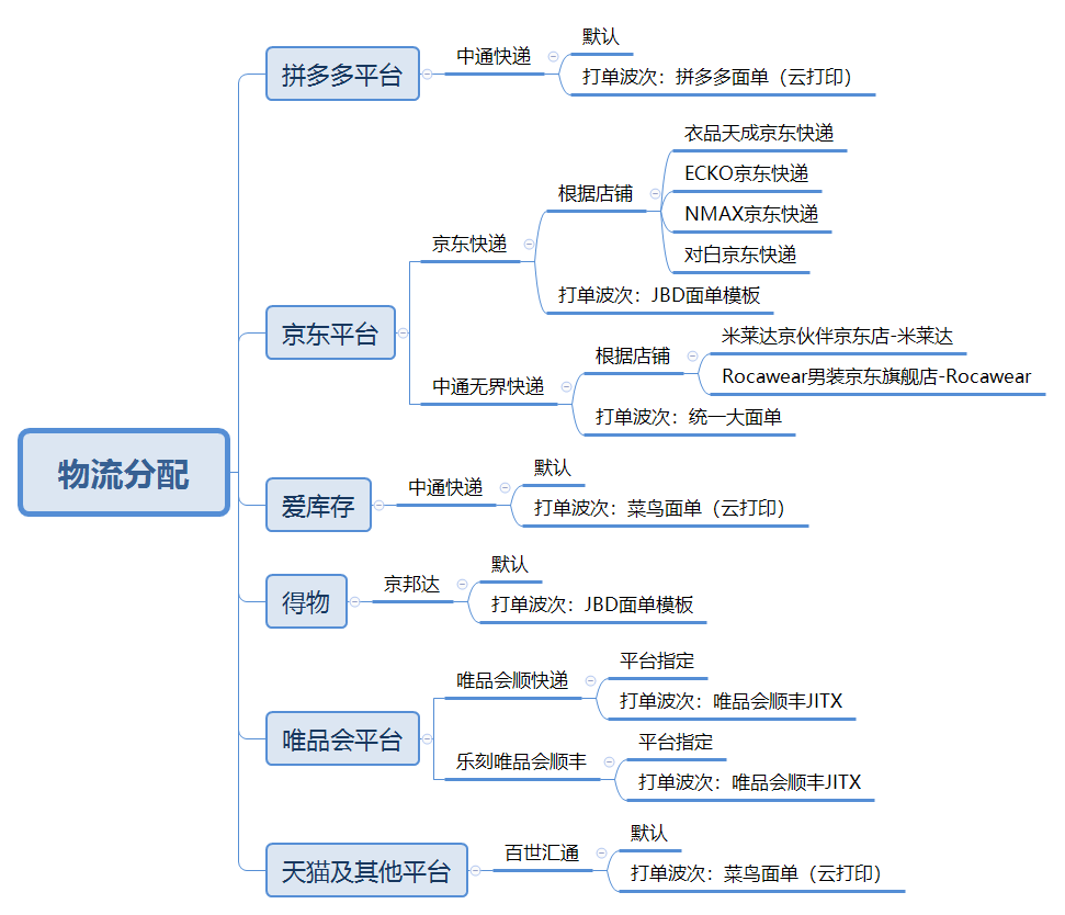 建议:可以先整理好每个渠道对应的快递,使用排除法的优先级进行复制(比如拼多多店铺的,先配置,再配置得物的,剩下全部为天猫小平台的)
