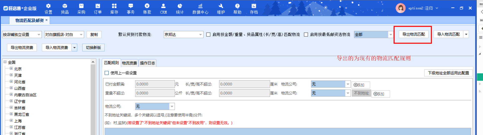 4、修改后的模板,保存后,选择【导入物流匹配】,覆盖原有配置