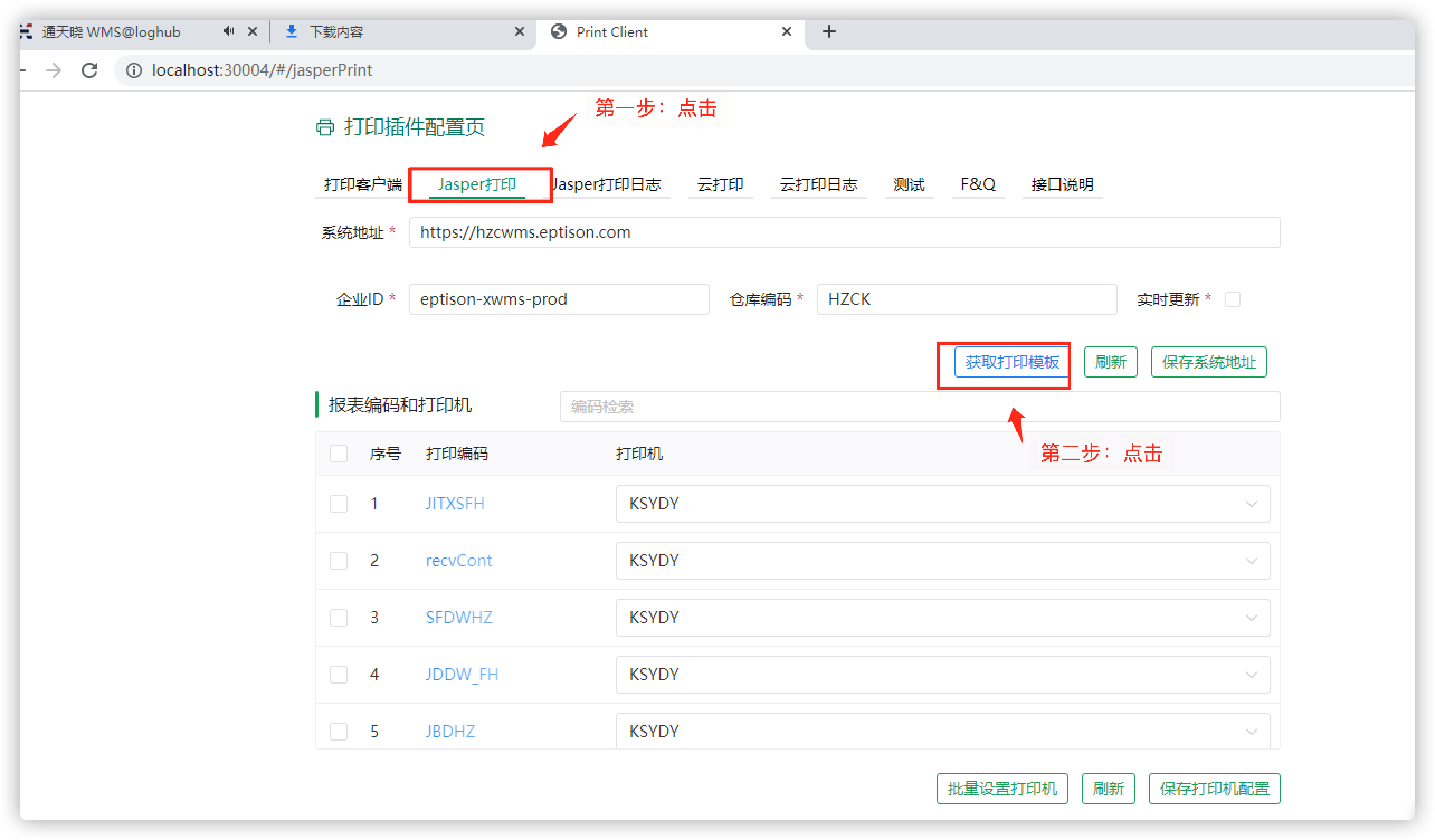 第五步:打开通天晓打印组建设置页面,重新获取最新打印模板