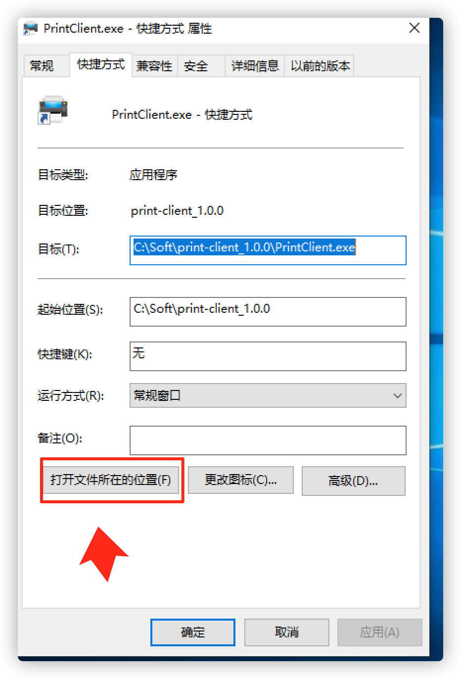 第二步:桌面找到 通天晓新打印组建图标快捷键,右键,点击文件所在位置,找到打印控件的安装文件夹
